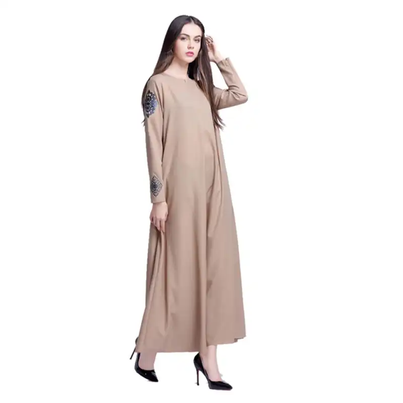 Abaya Muslim Dress Women Modest Clothes Invisible Zipper Islamic Dress Loose Waist Long Sleeve Round Neck Arabic Dresses