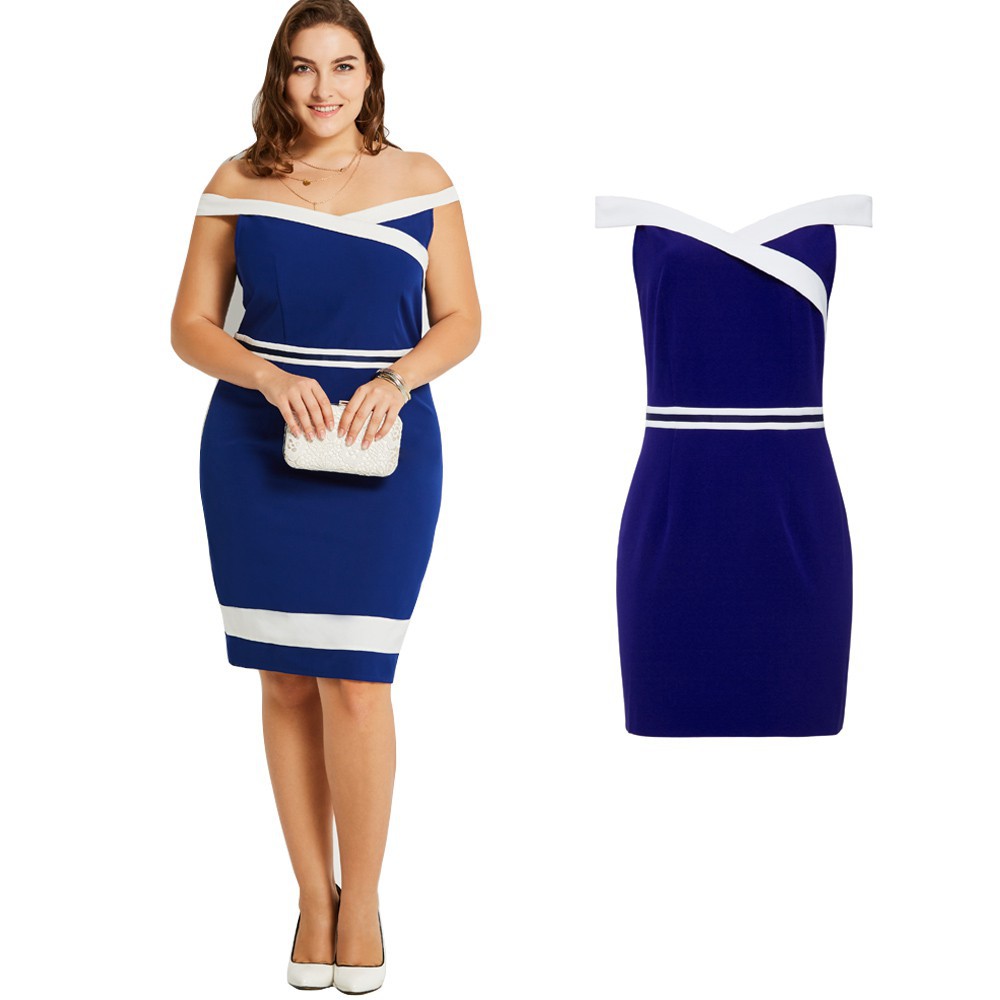 Plus Size Blue Invisible Zipper Women S Bodycon Dress